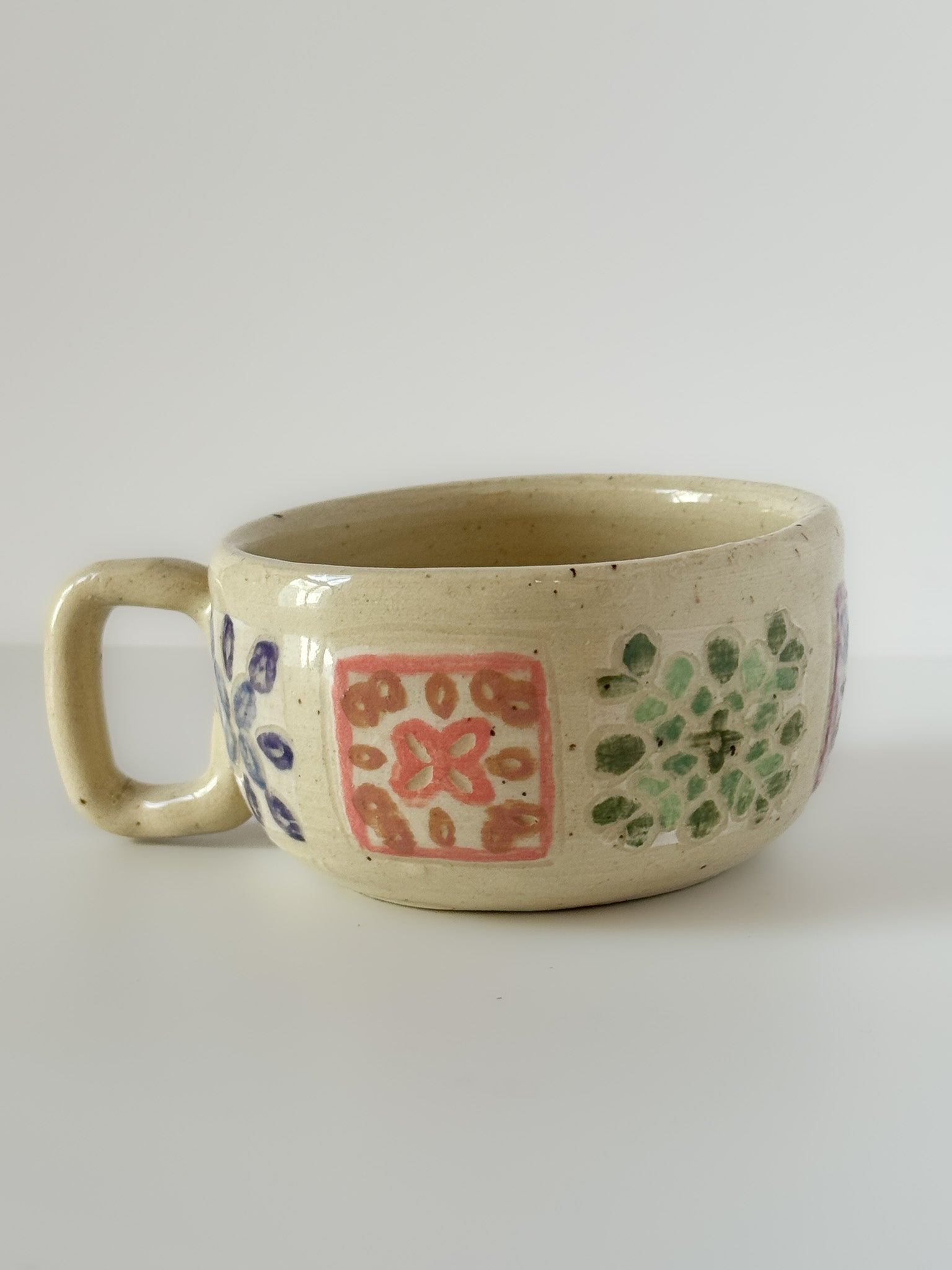 Wabi-sabi Short Mug // Granny Square Motif // OOAK